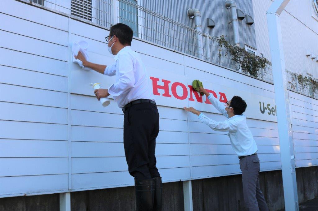 この天気をチャンスとばかりに佐藤さんと藤枝さんで看板をキレイにしました🧼✨✨