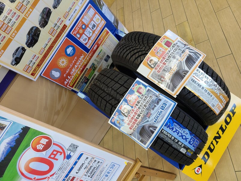 スタッドレスタイヤ(左)とオールシーズンタイヤ(右)