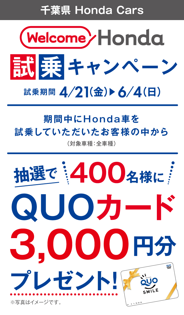 期間中にご試乗いただいた方の中から抽選で、QUOカード3,000円分を