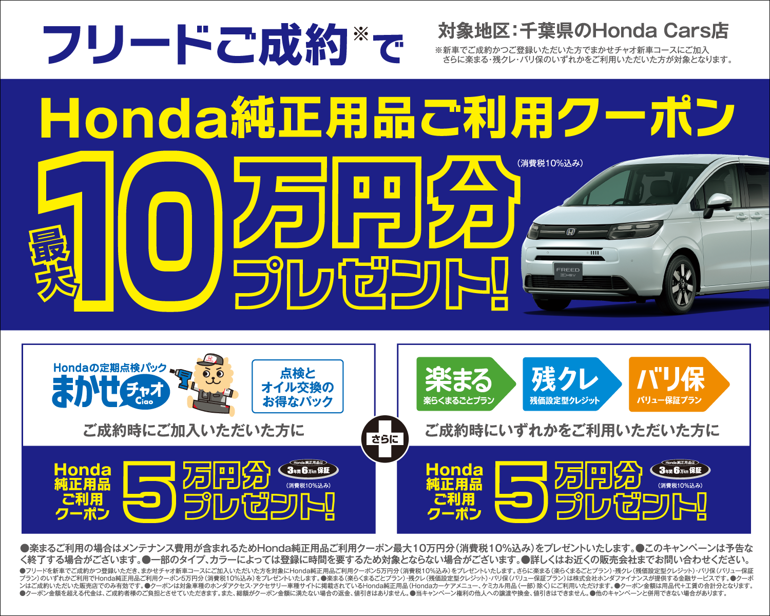 フリードご成約でHonda純正用品ご利用クーポン最大10万円分プレゼント!