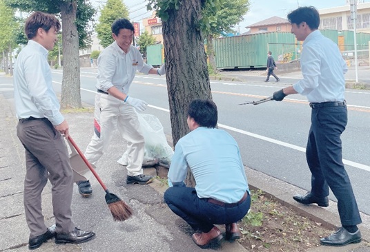 店舗近隣の清掃活動を毎週実施しています。地域社会の皆様の住みやすい街づくりのために私たちのできることから取り組んでまいります。また、地域社会への貢献は社員の働きがいになっております。